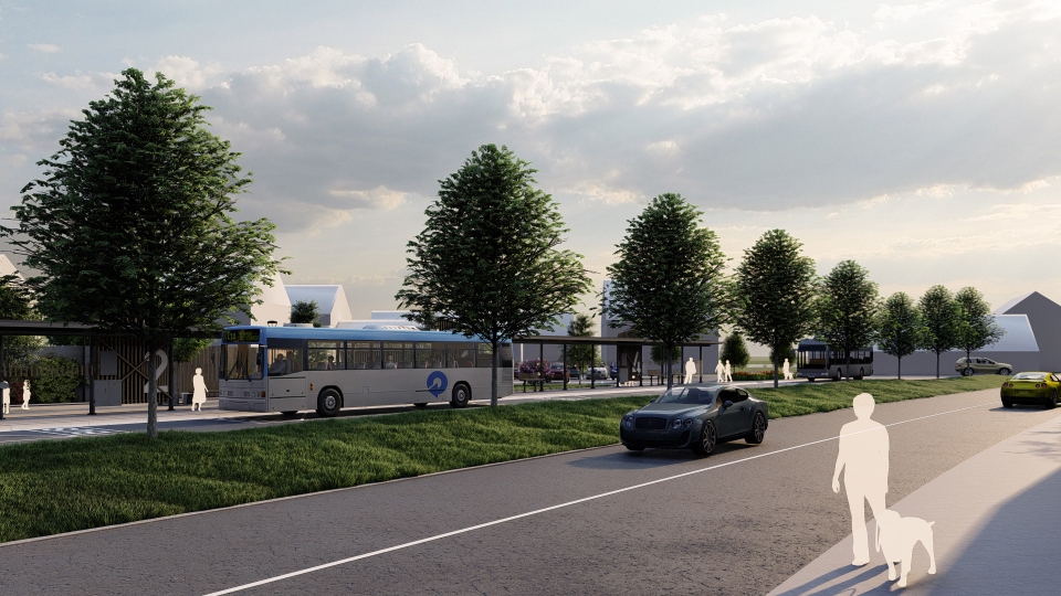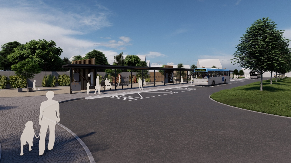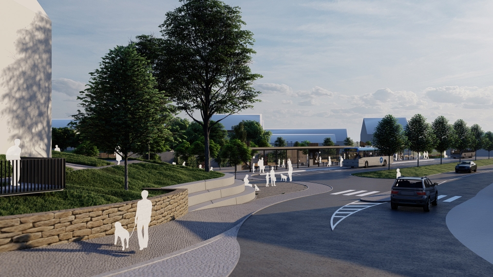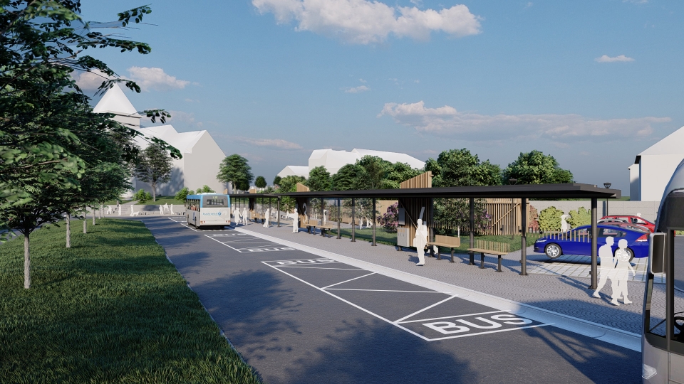 Návrh projektu autobusového terminálu, s úpravou okolí kolem kostela.