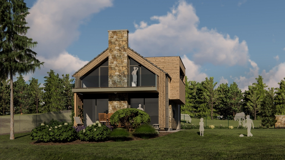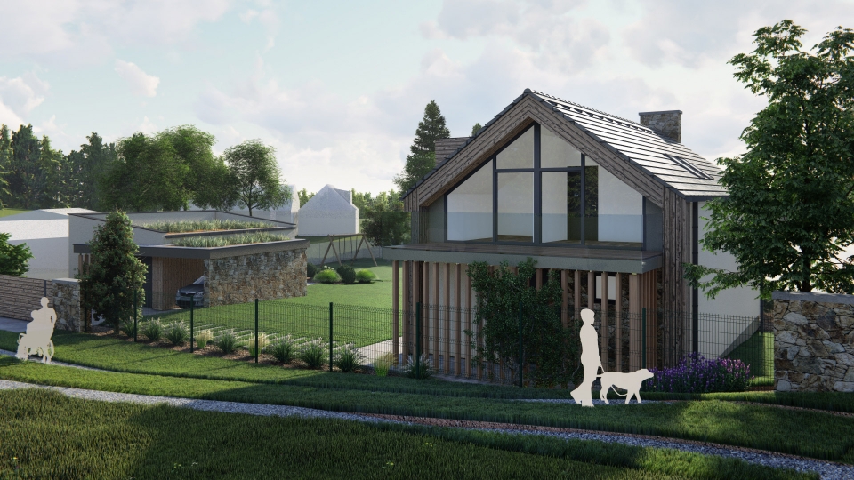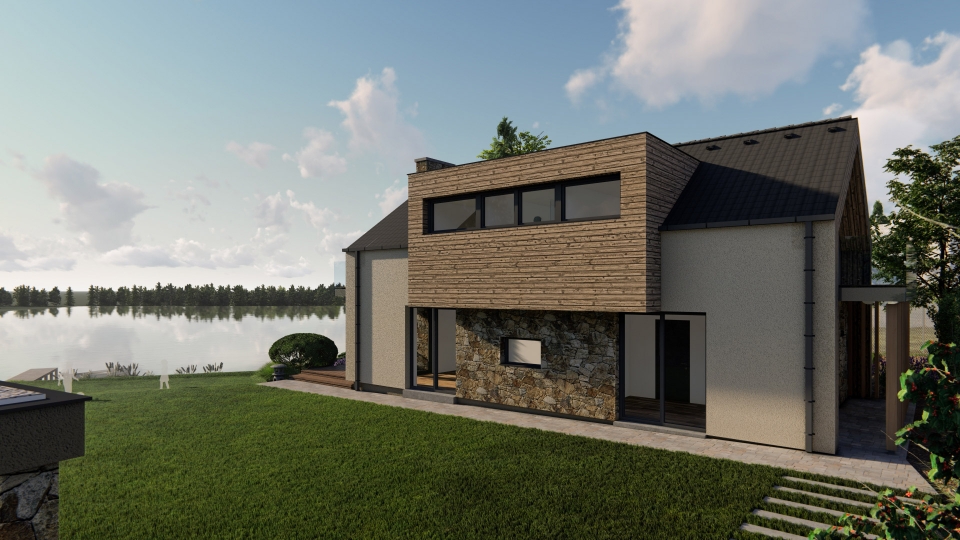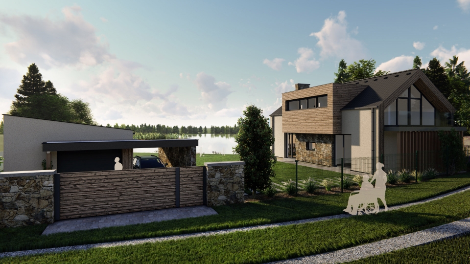 Dům u rybníka je navržen jako příjemné rodinné bydlení v malebné krajině Východních Čech s důrazem na propojení interiéru s okolní přírodou. Architektonický koncept klade důraz na harmonii s vodním prostředím a krajinným rázem, přičemž volba materiálů a jednoduché tvary podtrhují klid a nadčasovost celého návrhu. Vysoká míra prosklení umožňuje přirozené osvětlení a vytváří vizuální kontakt s rybníkem a okolní zelení, čímž podporuje pocit otevřenosti a relaxace.