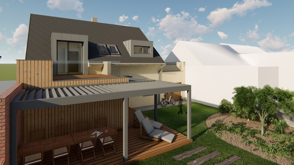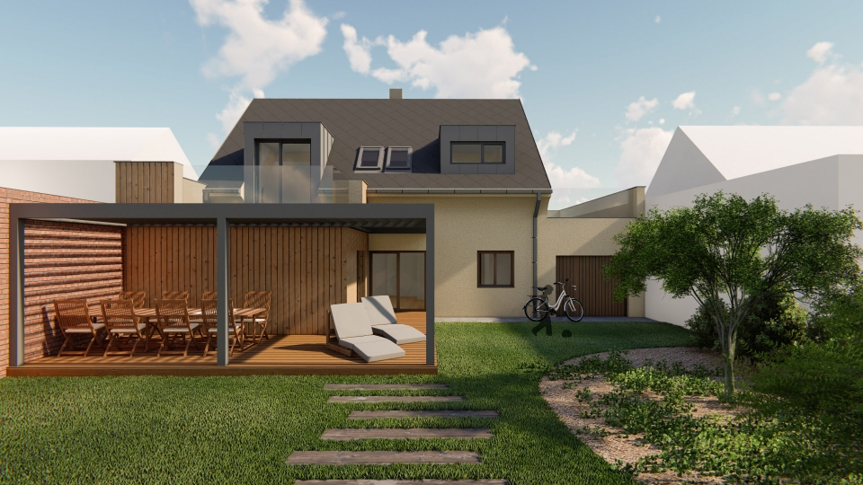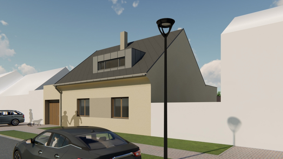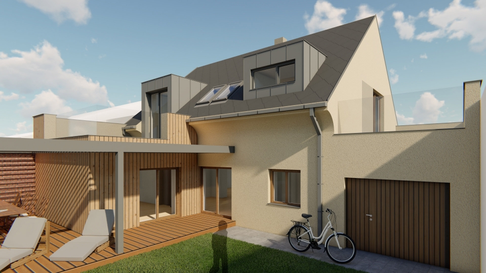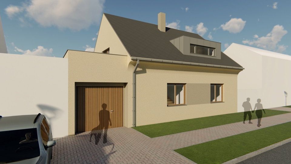 Návrh rekonstrukce řadového rodinného domu na dvougenerační chalupu s dvěmi samostatnými bytovými jednotkami se společným vchodem. V prvním patře se nachází technické zázemí domu, hlavní obytný prostor, ložnice a koupelna. V druhém patře se nachází další obytný prostor, dva samostatné pokoje a koupelna. K domu patří velká krytá terasa.