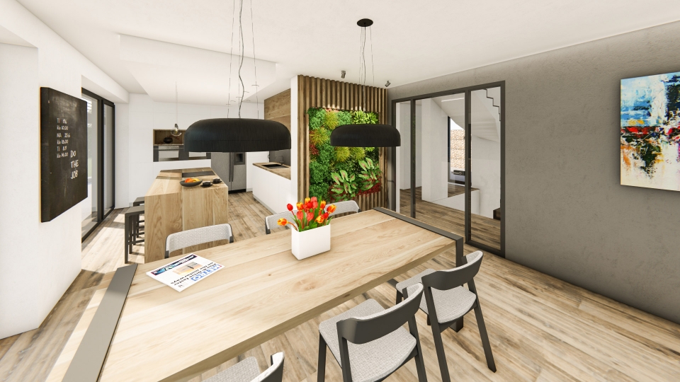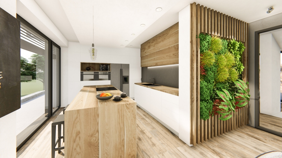 Třípatrový rodinný důmo dispozici 5+kk s vlastním wellness, navržen kompletně celý včetně interiéru. V přízemi domu se nachází luxusní wellness, technické zázemí domu a velká krytá terasa. V prvním patře se nachází obývací pokoj s kuchyní o velikosti 54 m2, ke kterému patří balkón. Na patře se také nachází samostatné WC a pracovna s malou koupelnou. V druhém patře se nachází ložnice se šatnou, dva samostatné pokoje a hlavní koupelna. K domu patří také kryté parkovací stání.